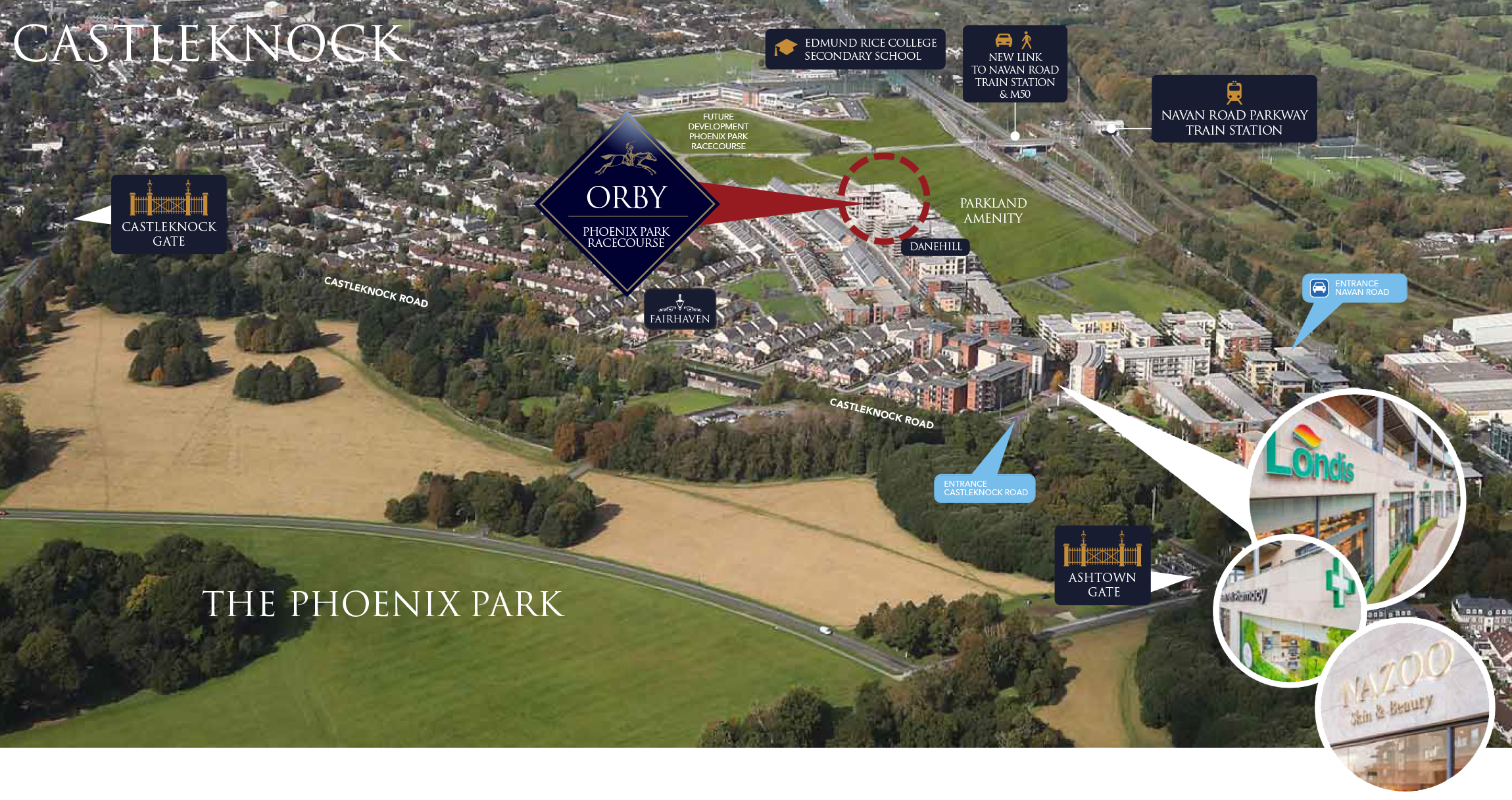 Passing along the old stone walls, under a canopy of mature trees, Castleknock Road provides a majestic entrance to the Phoenix Park Racecourse and a stunning setting for 21st century living. Here Flynn & O’Flaherty have created a great selection of superb homes at Orby amid landscaped grounds in a development that includes it’s own train station at Navan Road while Ashtown Station is also close by.